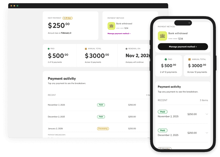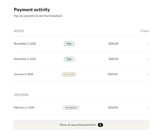 Clear payment history with built-in context