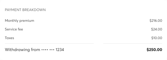Displayed premiums, taxes, and service fees directly within each payment
